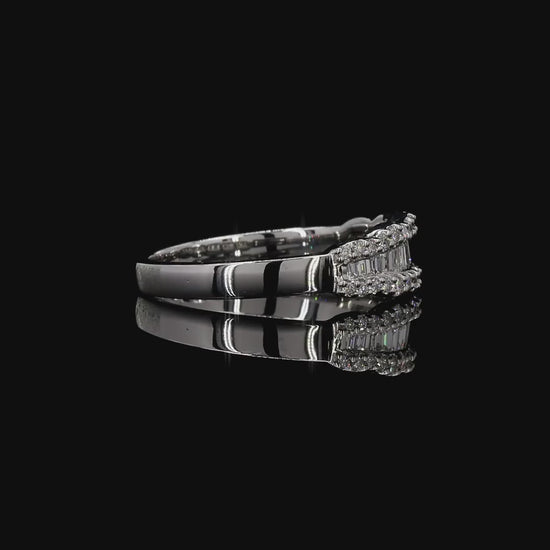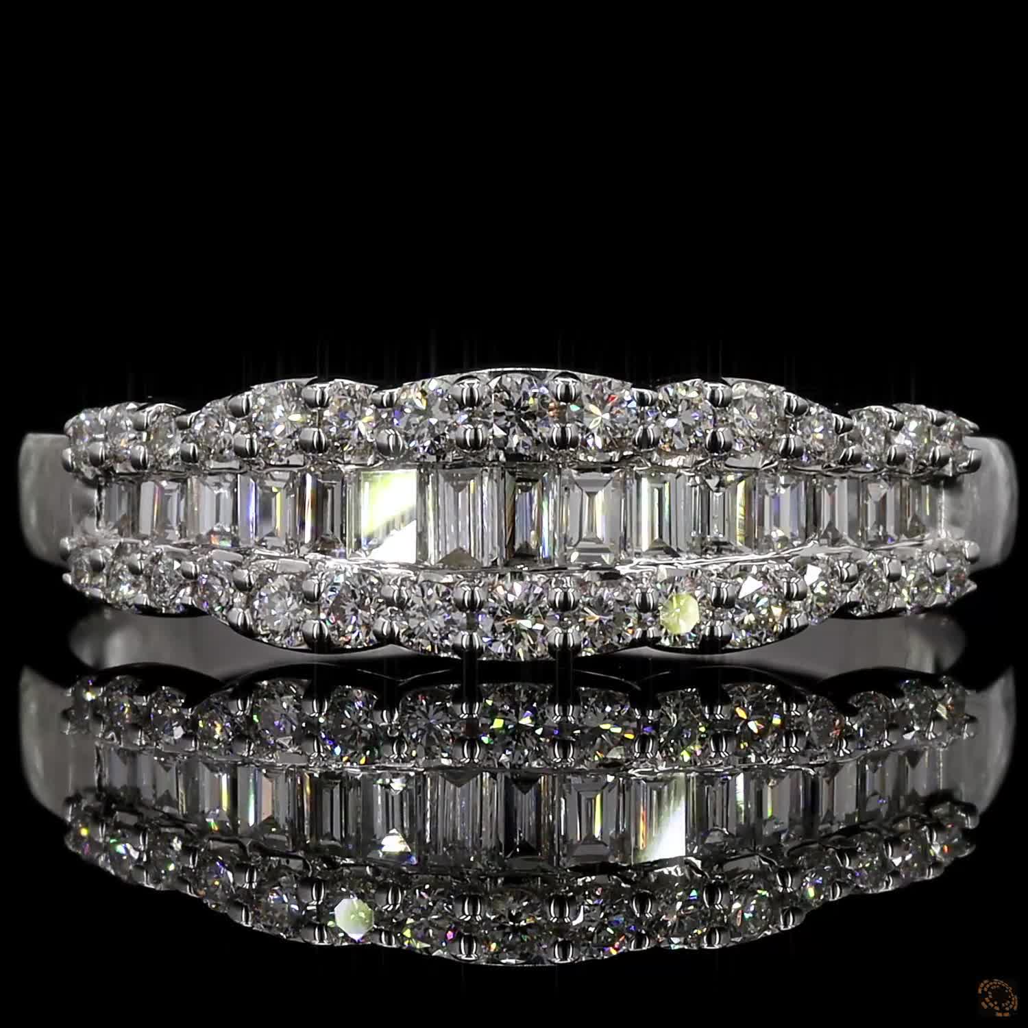 Cassara is an exquisite statement of elegance and precision. This stunning band blends rows of round and baguette cut lab grown diamonds, each set with artful precision to reflect light from every angle. The result is a refined yet radiant look that transitions seamlessly from daily wear to celebratory occasions.