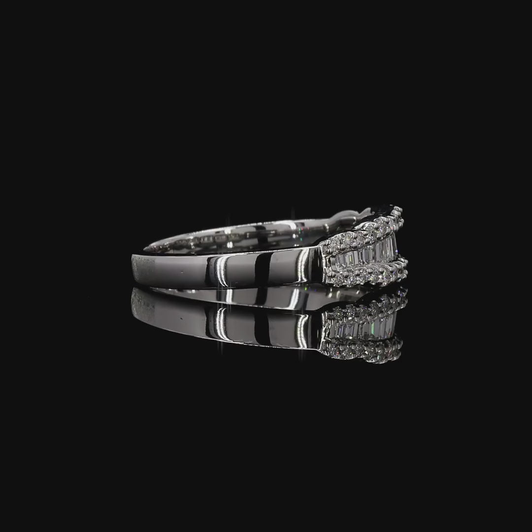 Crafted in your choice of 14K or 18K white gold, Cassara combines contemporary geometry with classic sparkle. Whether worn as a wedding band, anniversary piece, or a stacking ring, it's designed to dazzle with intention and grace.