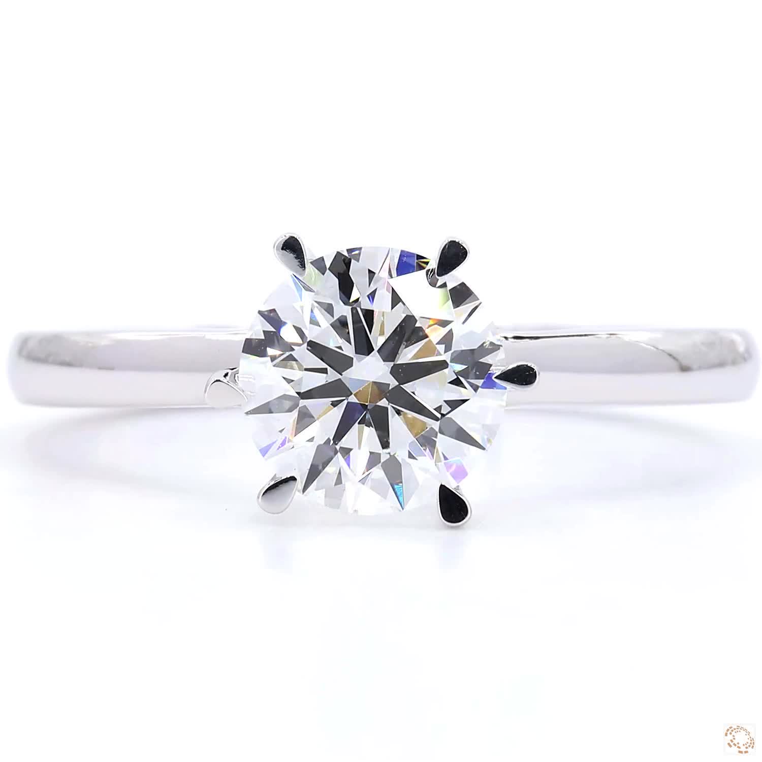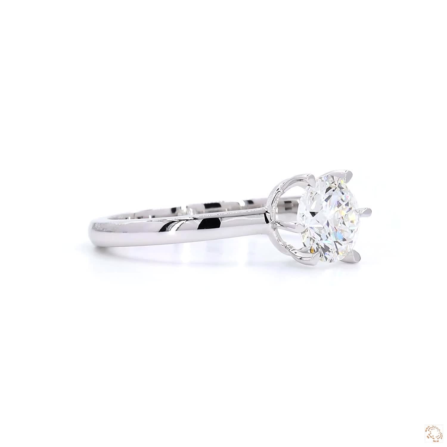 The Celine solitaire ring is a true classic, featuring a 1.5ct round lab-grown diamond set in a refined six-prong setting. Its minimal band and elevated crown design allow the diamond to shine at every angle — perfect for proposals, promises, or timeless gifts.