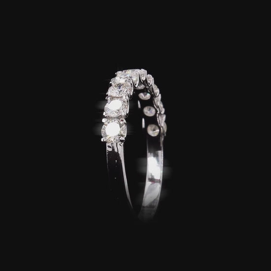 The Diana ring is a timeless half eternity band adorned with nine perfectly matched round lab-grown diamonds, each bezel-set for a refined and seamless look. Its graceful curvature and secure setting make it ideal for everyday luxury — whether stacked, worn solo, or paired with an engagement ring.