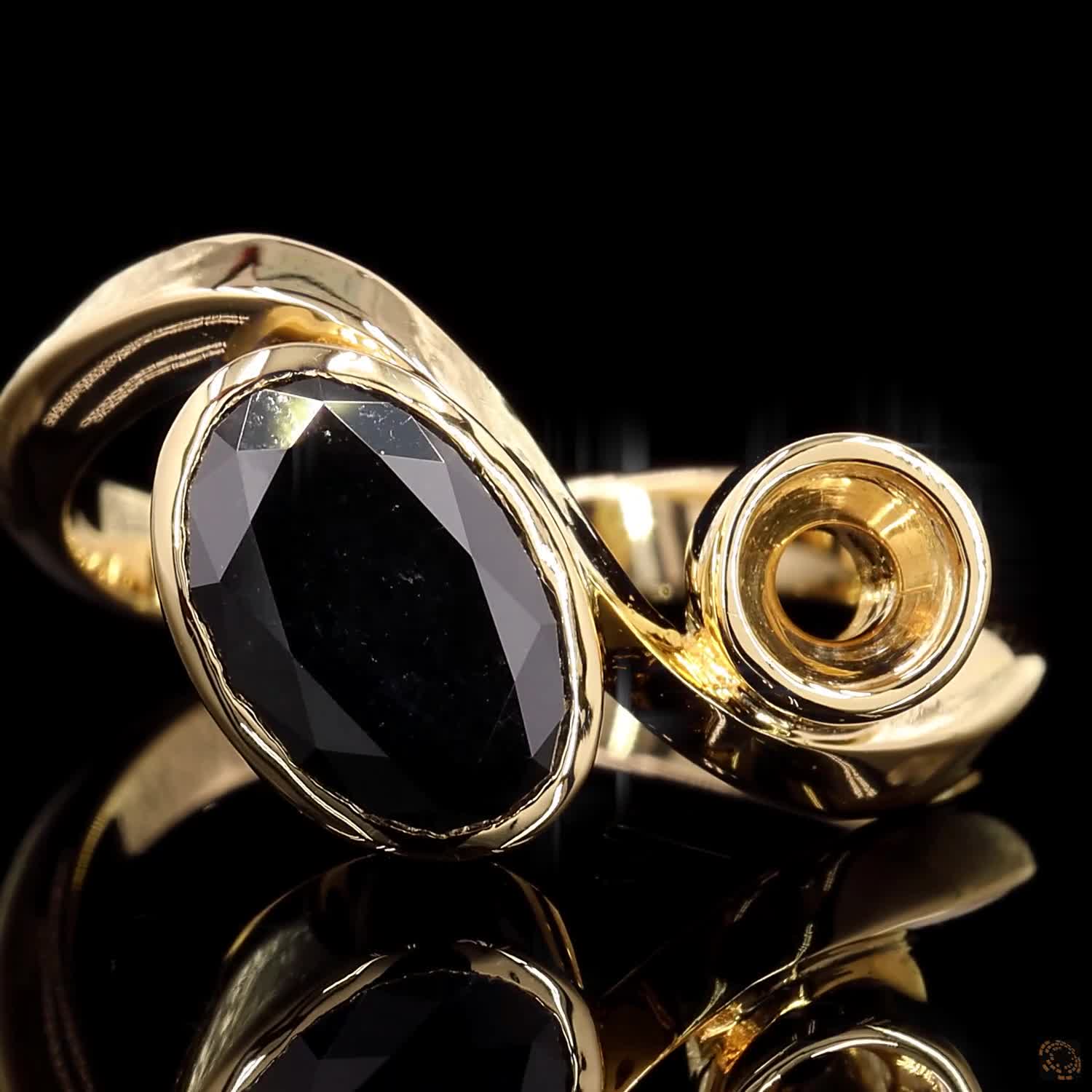 Make a bold and dramatic statement with this magnificent Avant diamond ring. Crafted in warm yellow gold, this ring features a striking and modern design. The centerpiece is a magnificent lab-grown black oval-cut diamond with a total carat weight of 1.28, elegantly set into a sleek, sculptural band.