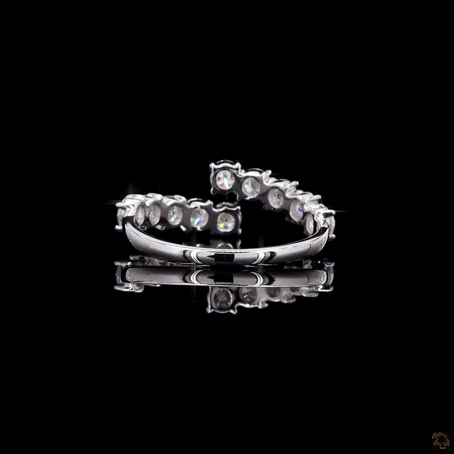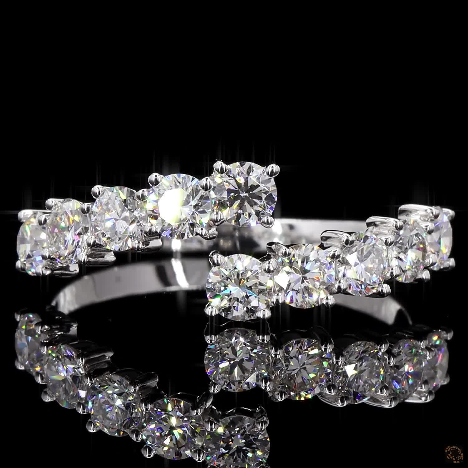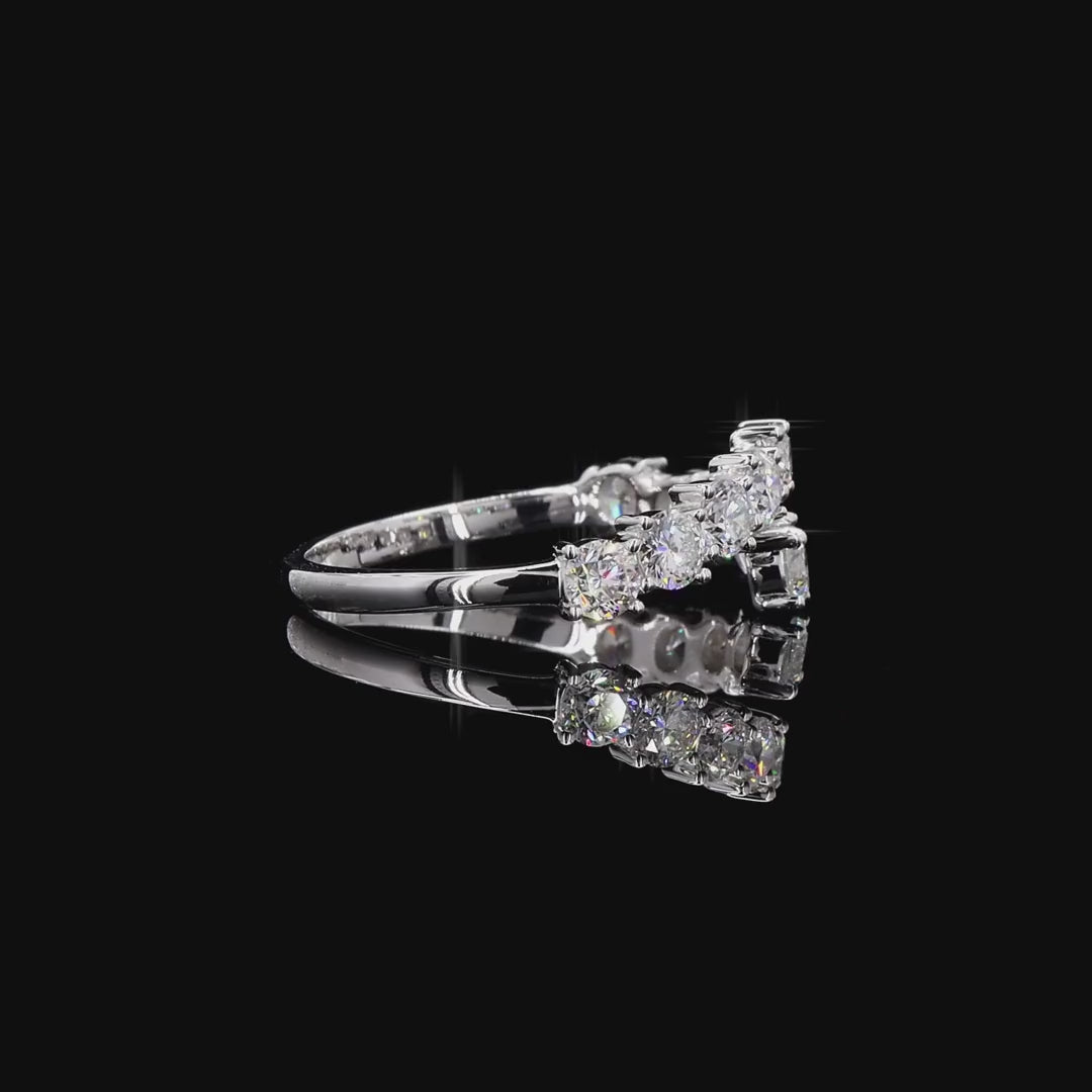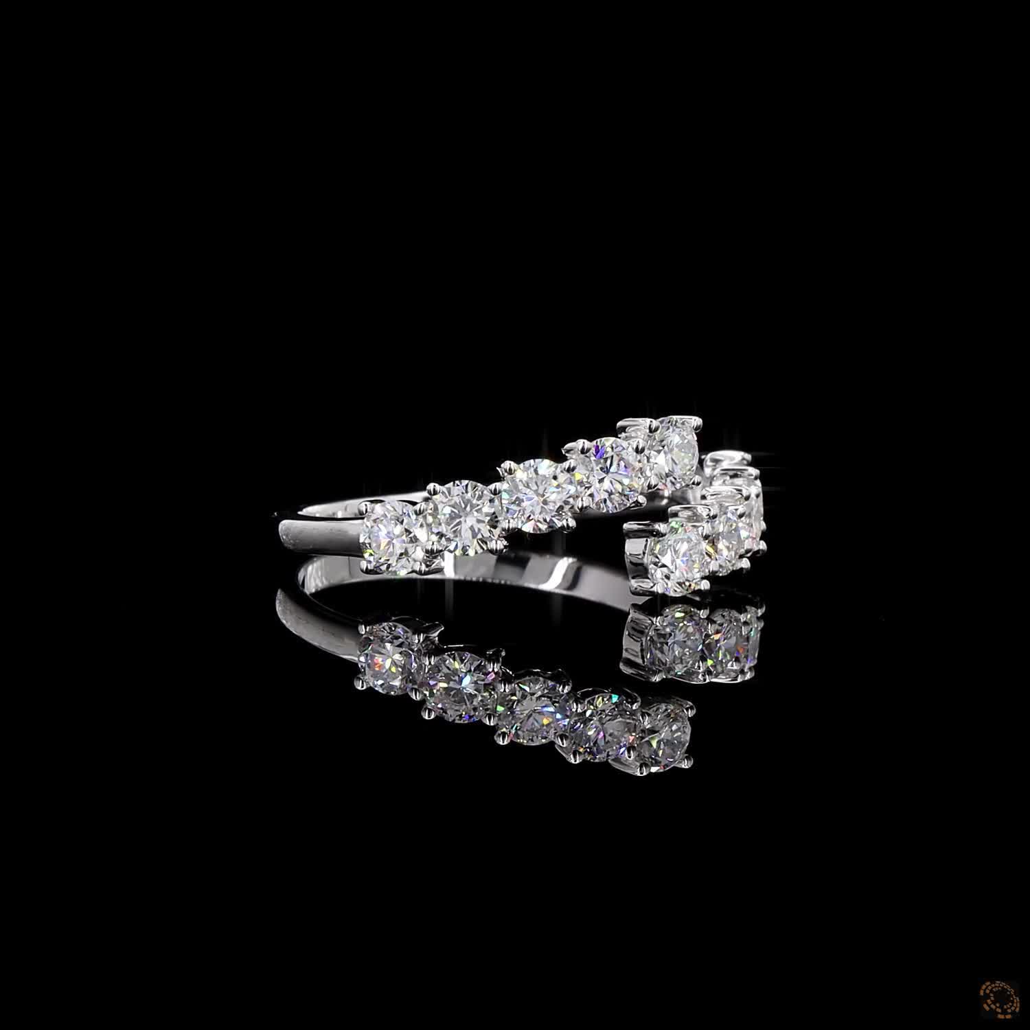Evara is a modern take on classic brilliance — designed to shine from every angle. Set with 10 round lab-grown diamonds, each 3.00 mm in size, the ring wraps around the finger with a unique open-band design that catches the eye and the light.