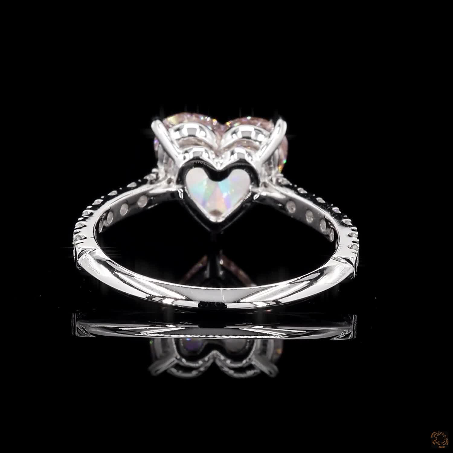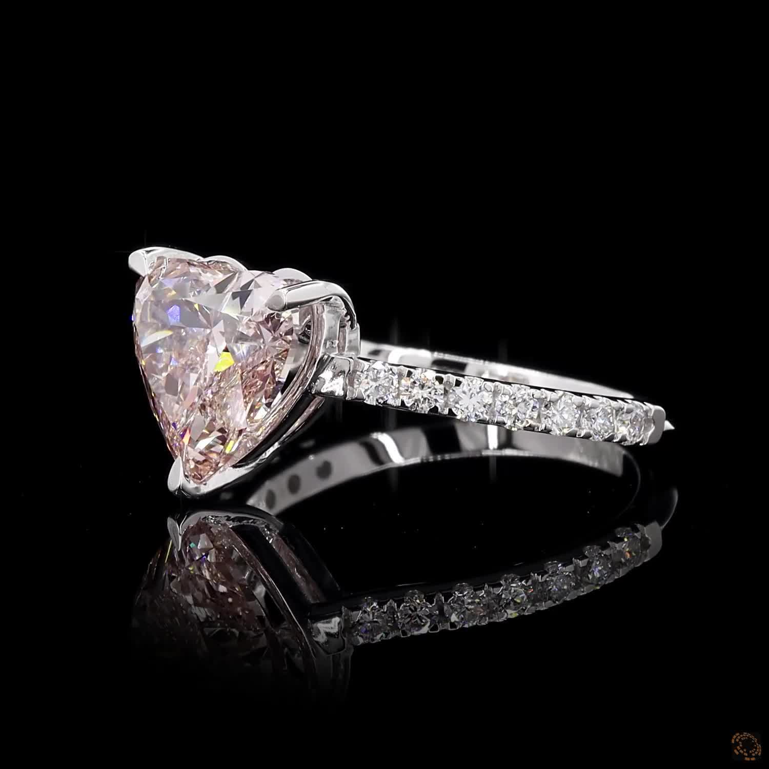 Declare your love with this romantic and breathtaking Exquisite diamond ring. Crafted in polished white gold, this ring features a magnificent lab-grown heart-shaped diamond in a rare and stunning fancy pink hue. The delicate band is beautifully accented with a row of round lab-grown diamonds, adding a radiant and classic touch.