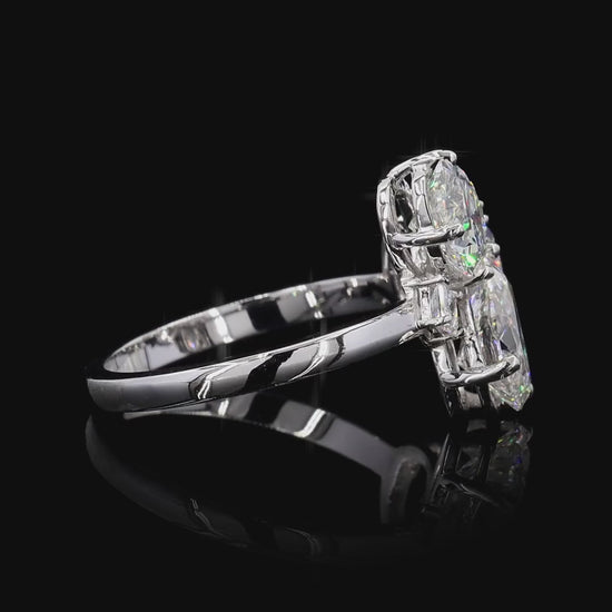With a combined total carat weight of 1.6, this ring is a perfect blend of elegance and modern style. The diamonds are graded with an E-F color and VVS-VS clarity. This ring is a true work of art, combining classic shapes in a bold new way, making it a perfect choice for those who want a truly distinctive piece of jewelry.