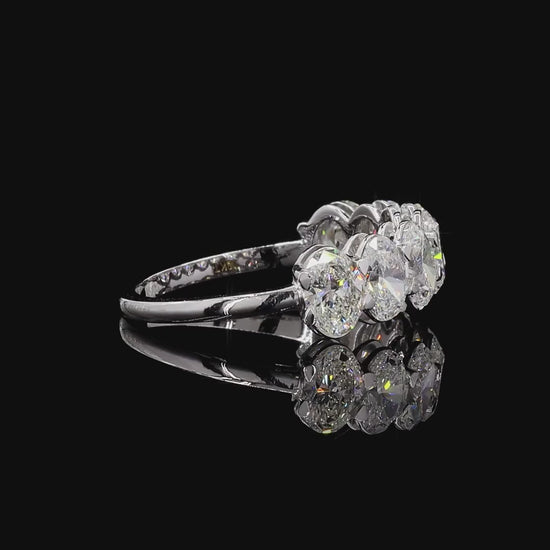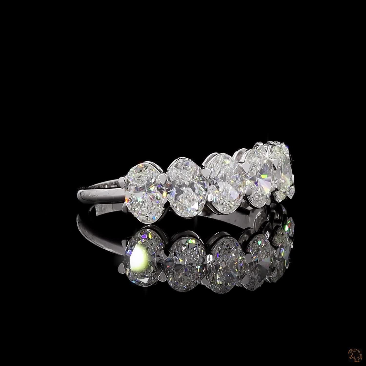 Make a brilliant statement with this magnificent Exquisite diamond ring. Crafted in stunning white gold, this ring features a beautiful seven-stone design, with seven brilliant lab-grown oval-cut diamonds set across the top. The elegant, elongated shape of the oval diamonds creates a timeless and brilliant display of light.