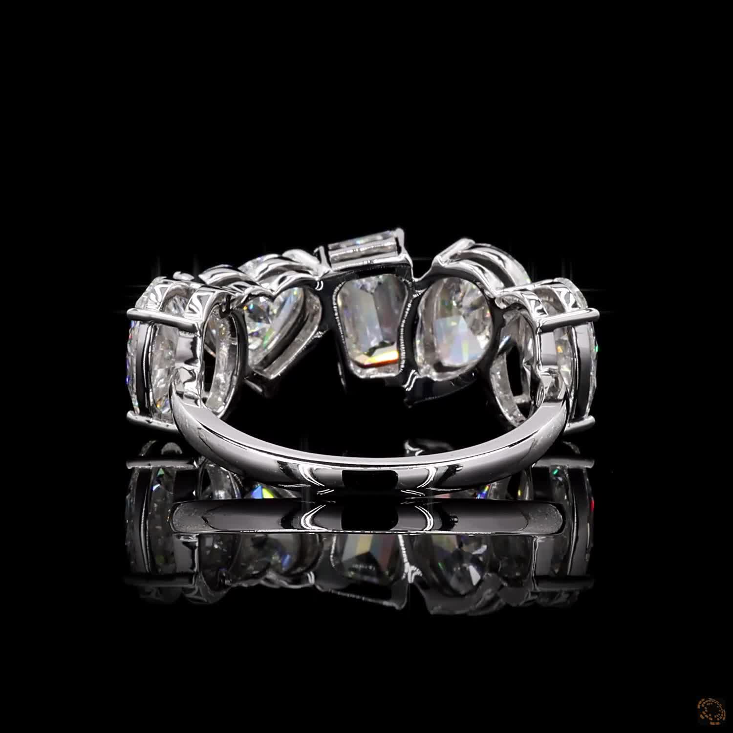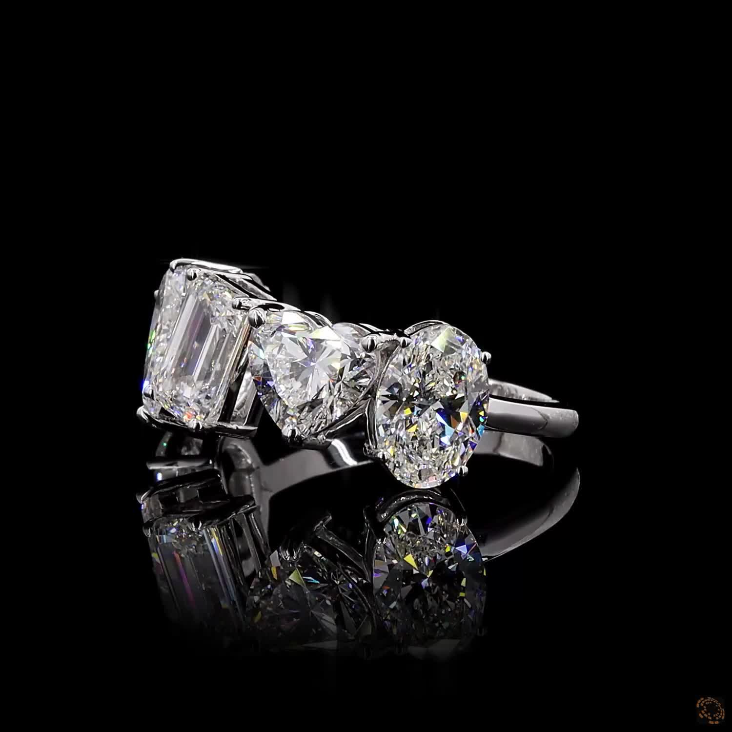 With a combined total carat weight of 4.97, this ring is a powerful and luxurious piece. The lab-grown diamonds are graded with a DEF color and VVS-VS clarity, ensuring they radiate a stunning, near-colorless sparkle. This ring is a true work of art, perfect for those who appreciate bold, contemporary design with a touch of timeless elegance.
