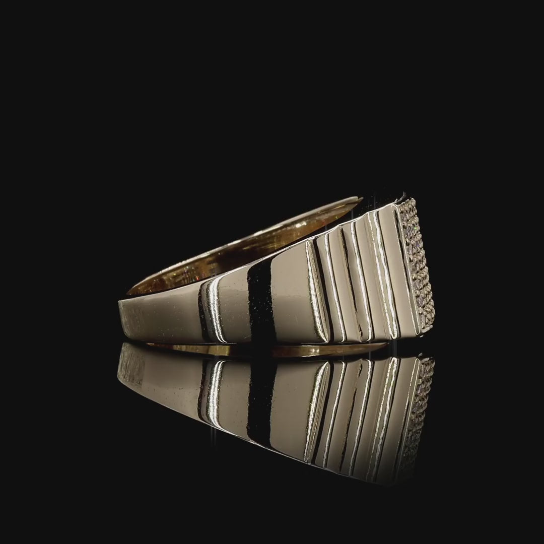 Make a bold statement with this magnificent Luster diamond signet ring. Crafted in polished yellow gold, this ring features a striking rectangular top that is meticulously encrusted with a mosaic of sparkling lab-grown round diamonds. The sleek, tapered sides of the band add a modern touch to this classic design.