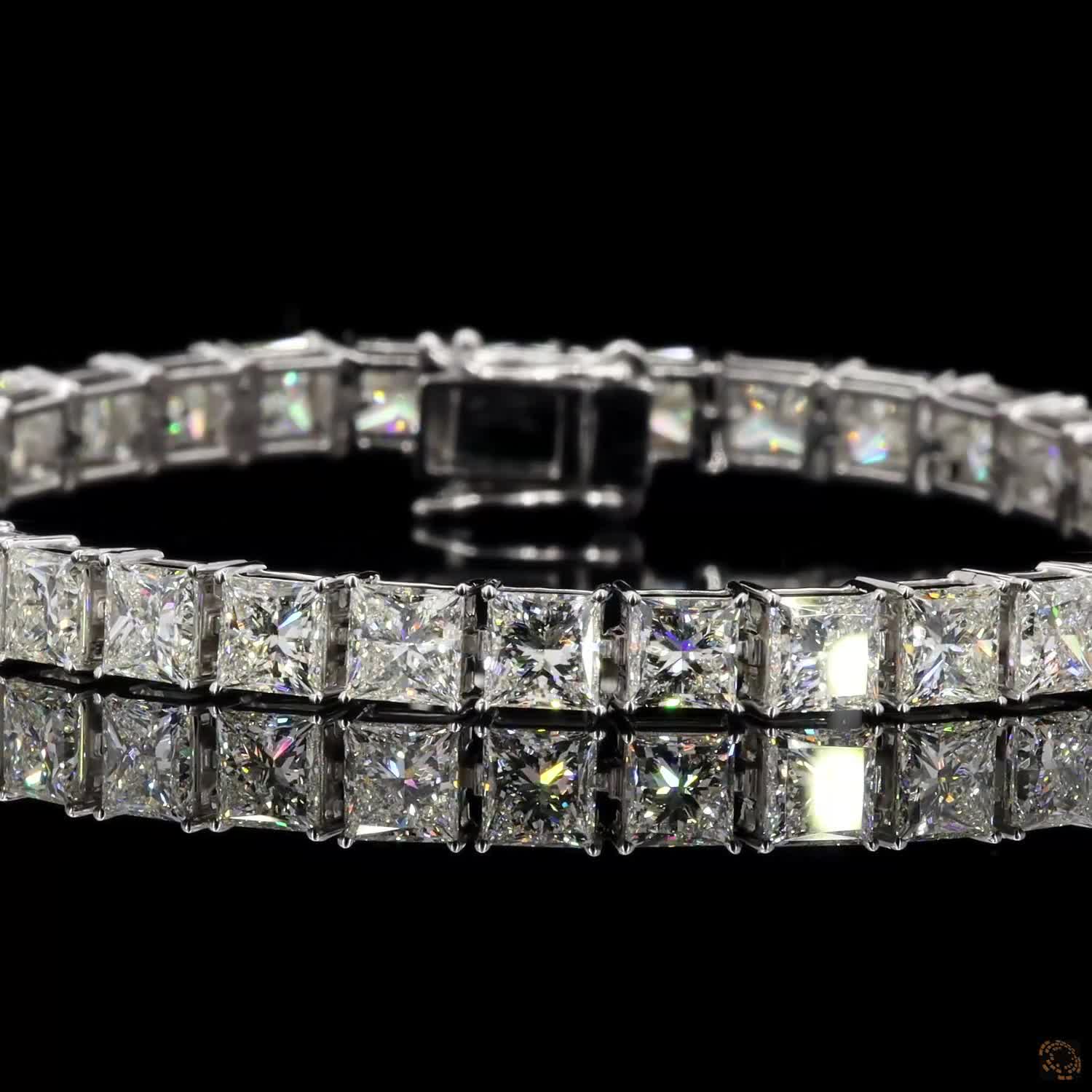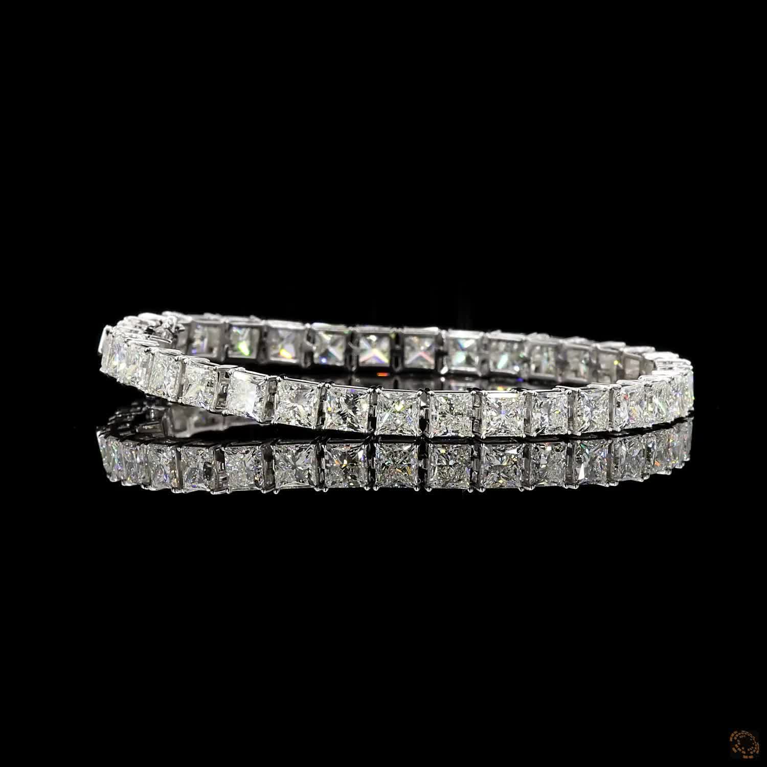 Every diamond, graded DEF in color and VVS–VS in clarity, is precision-set to highlight the sharp edges and geometric elegance of the princess cut. With an average width of 5.30 mm, this bracelet offers a bold yet timeless silhouette, perfect for special celebrations, milestone moments, or as an heirloom-worthy treasure.