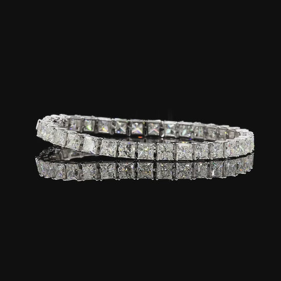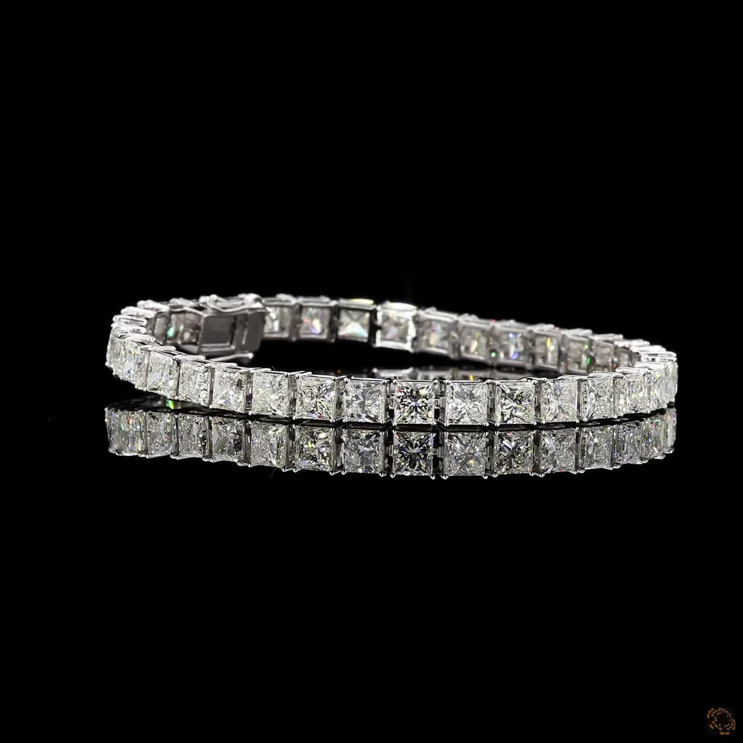 The Serenade Princess-Cut Diamond Tennis Bracelet is a statement of refined brilliance and modern sophistication. Crafted in white gold, this masterpiece features 38 lab-grown princess-cut diamonds, each weighing approximately 0.50 carats, coming together to form a breathtaking 20.26 ctw display of fire and sparkle.